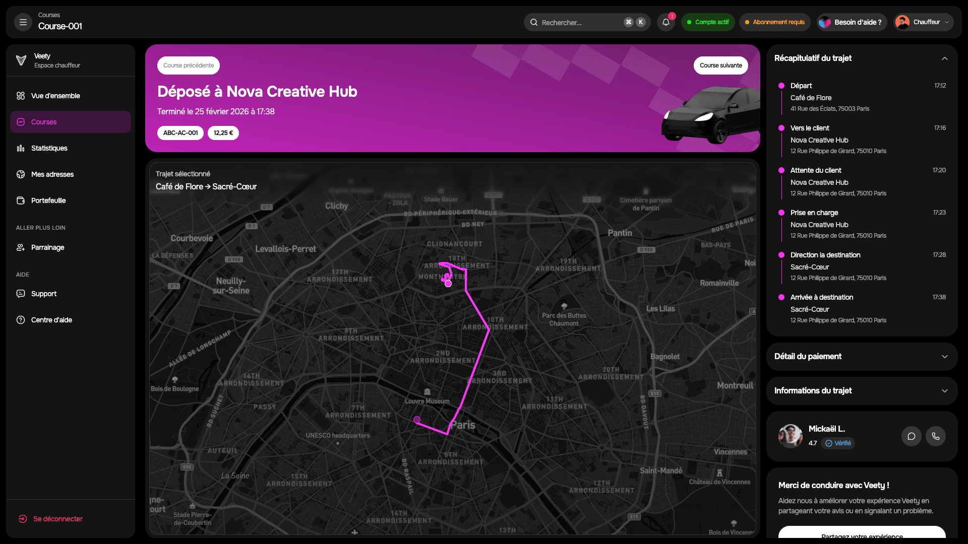 Fonctions de sécurité et appels d'urgence à chaque course.